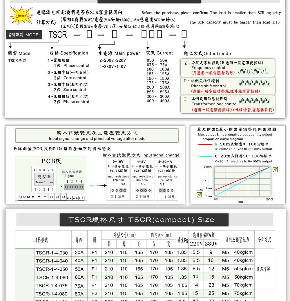 輸入模式:可變更/硬件方式變更 4~20mA/1~5V/0~10V 輸出模式:不可變更 零位.相位